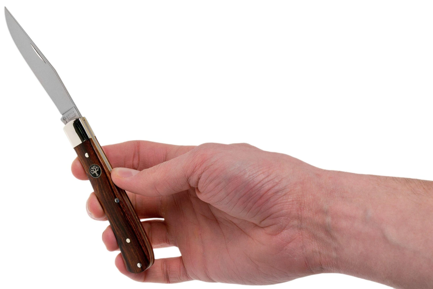 Le Böker Trapper Uno Desert Ironwood 112565 est un couteau de gentleman classique. Son design est traditionnel et relativement passe-partout. Le design Trapper est repris par de nombreuses marques depuis des années. Mais peu arrivent à créer des Trapper aussi superbes que ceux de Böker.
