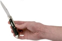 Le Case Trapper est un couteau de poche traditionnel en forme Trapper classique. C’est un modèle qui a ses origines chez les chasseurs et les braconniers. Cette version particulière a deux lames : une clippoint classique et une speypoint traditionnelle. Les deux lames ont leur propre utilitĂ© pour le dĂ©peçage du gibier après la chasse. Elles sont maintenues en position ouverte par un mĂ©canisme slipjoint.