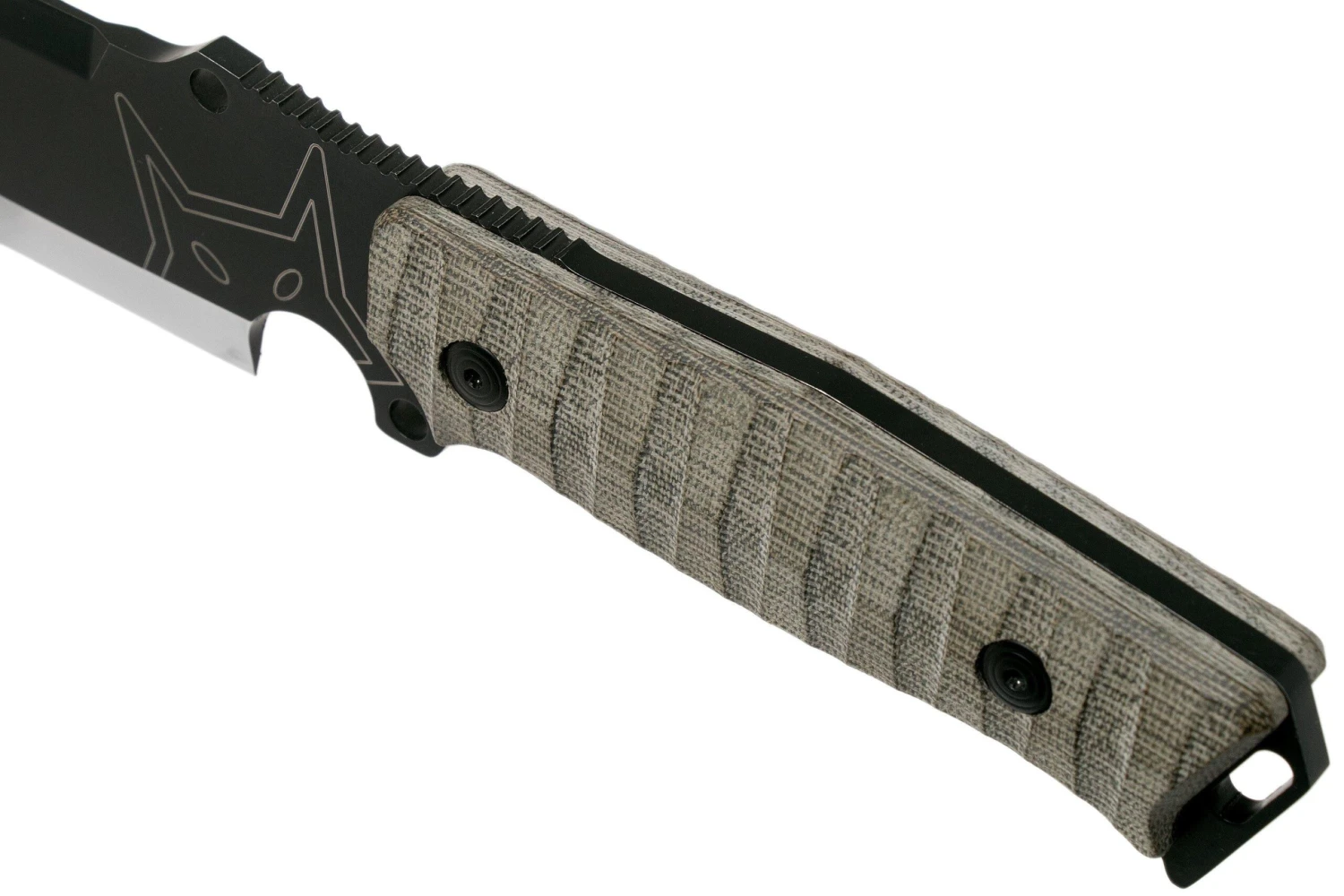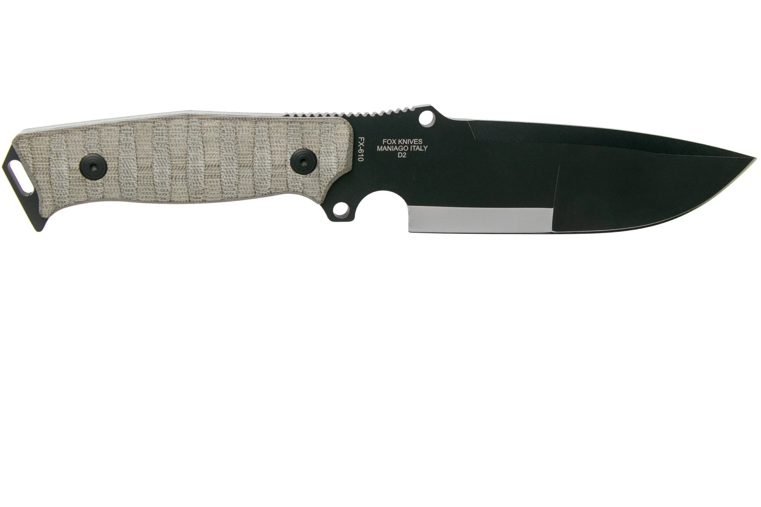 Le Fox Sherpa Bushman FX-610 est un gros couteau de survie, fait pour une utilisation intensive. La lame a une Ă©mouture intĂ©ressante. La pointe est très affinĂ©e de façon plate, prĂ©cĂ©dĂ©e d’un tranchant en V secondaire. La base de la lame est Ă©paisse, avec un aiguisage plutĂ´t façon scandivex. Un mix entre scandi et convexe. C’est idĂ©al pour une bonne conservation du tranchant.